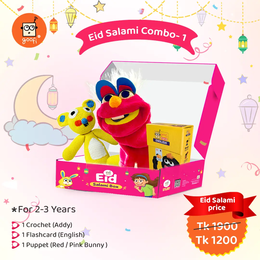 ছোট্ট সোনামণির জন্য পারফেক্ট ঈদ সালামি! অ্যাডি ক্রোশেট টয়, ইংলিশ ফ্ল্যাশকার্ড ও হ্যান্ড পাপেট — একসাথে শেখা, খেলা আর কল্পনার আনন্দ।