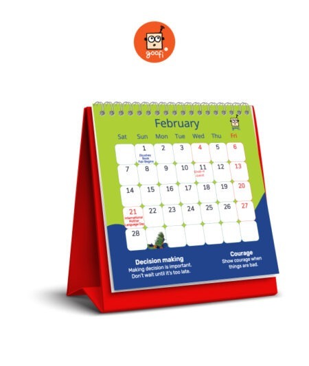 Bring joy and learning to your child’s daily routine with the Goofi Desk Calendar! Featuring vibrant illustrations, motivational themes, and reminders for key events, this calendar is perfect for keeping kids organized and inspired all year long.